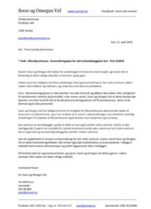 Som et supplement til revisjon av brannsikring for Son indre sentrum, mener styret Soon og Omegns Vel at dette brannsikringstiltaket i det minste også bør kvalitetssikres av brannvesenet, i tillegg til arbeidet kommunens administrasjon og andre fagpersoner ellers nedlegger.